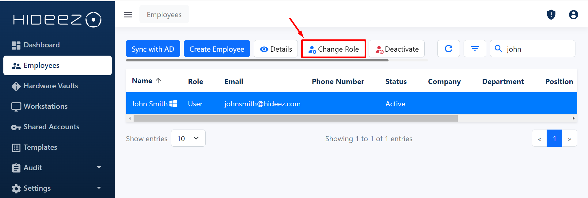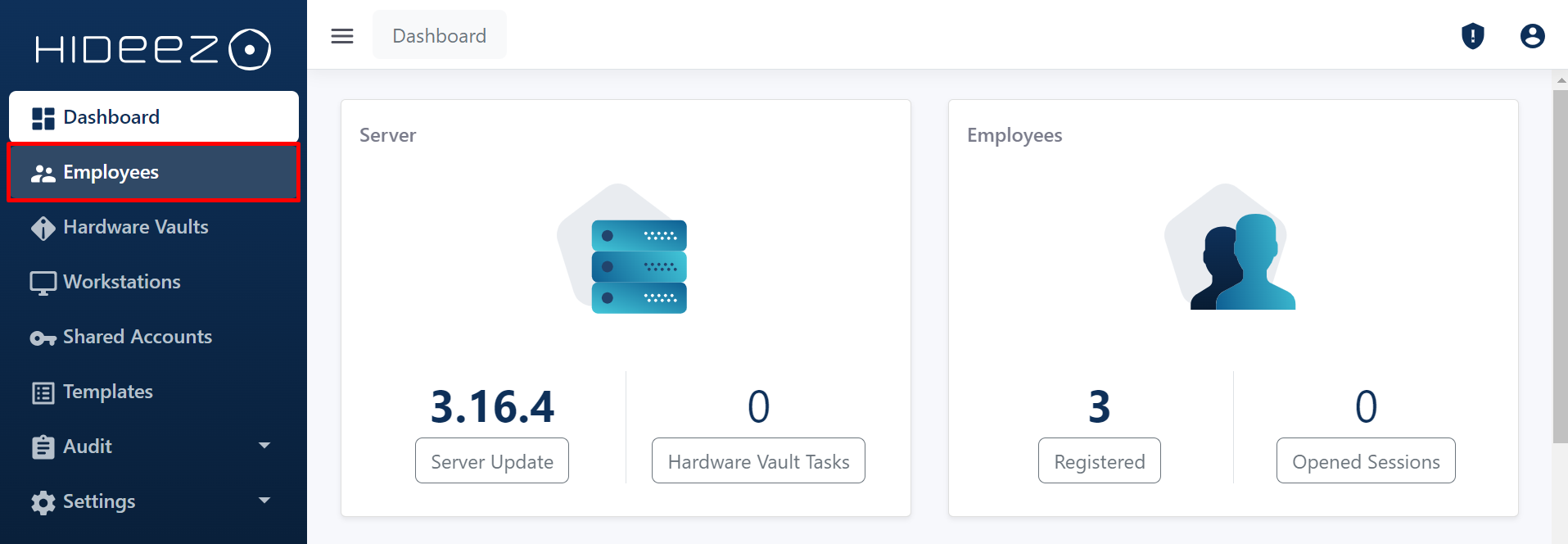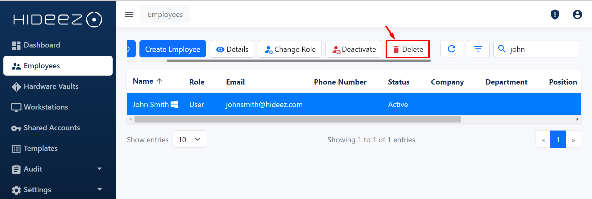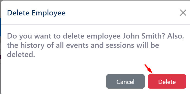 Select the required user from the list in the **Employees** section and click the **Delete** button.